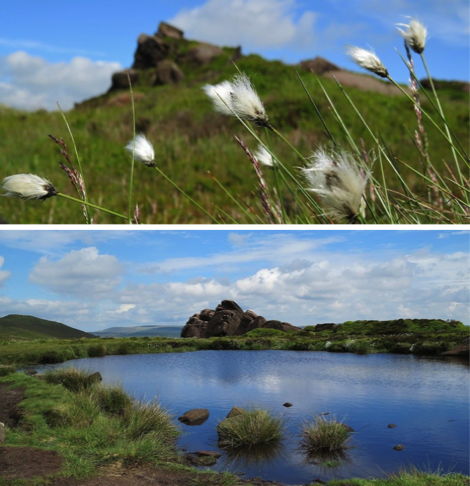 The path along the edge of the ridge to Roach End is simply divine, as there are fabulous panoramic views to enjoy. I could hear a cuckoo down in the trees – the first I have heard for some time. Cotton grass amidst the bilberry and heather was gently wafting in the breeze like a Mexican wave of little white flags.