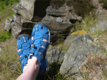 Some sandals sacrifice support for comfort, but this isn’t the case with the Clearwater CNX. The contoured arch and sturdy webbing upper offer excellent support, and the soles have great grip – so you can stride out with confidence. The toe shield surrounds the toes to protect and prevent stubbing – essential on stony mountain paths or when scrambling over rocks, and something I really appreciated when negotiating rocky edges in the Peaks.